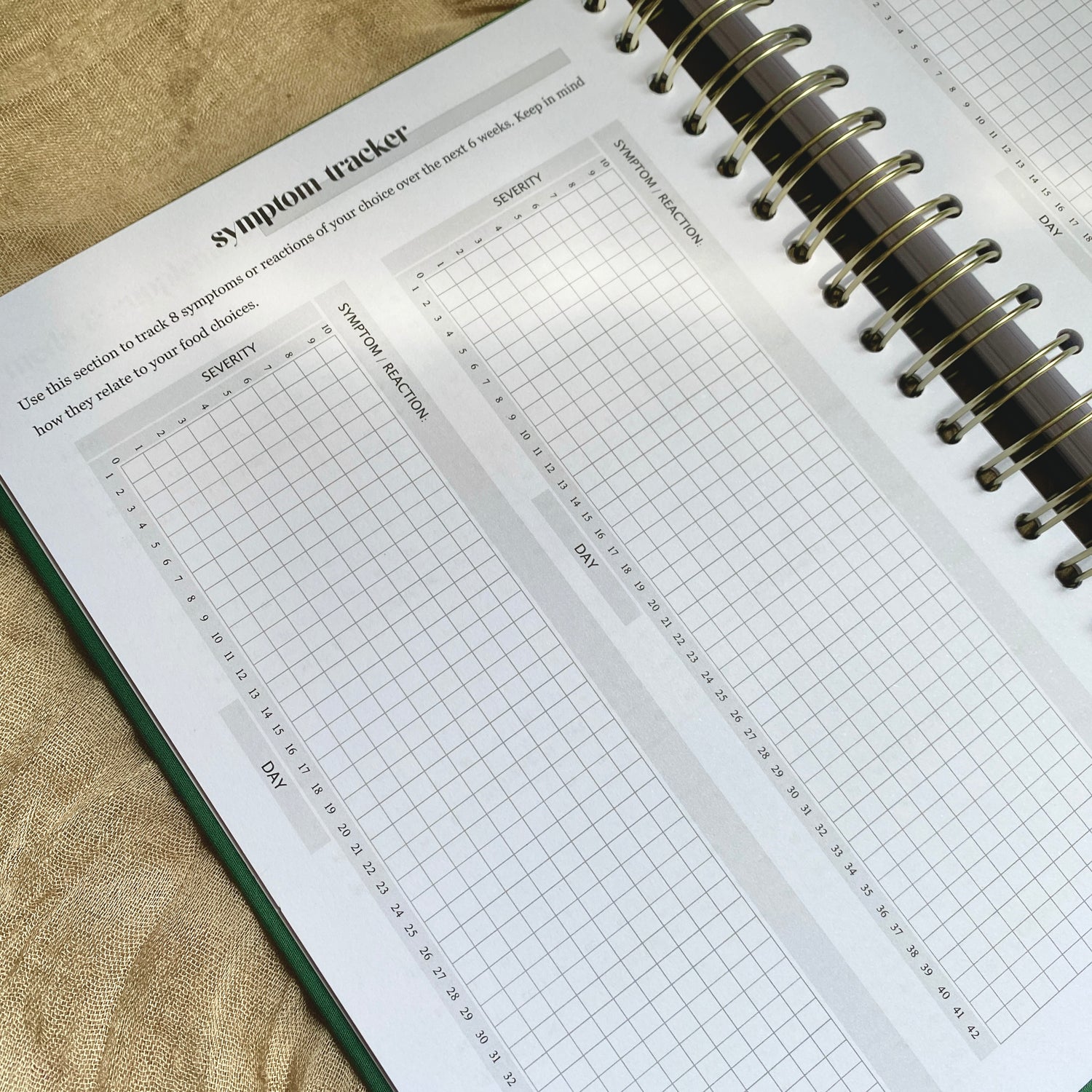 The beginning of the journal includes space to plan your goals, a blank calendar, and pages designed for you to track your habits, symptoms, medication and supplements across the 42 days.